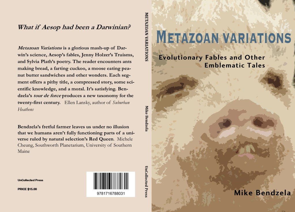 My Bendzela’s exquisite book of “evolutionary fables and other emblematic tales” is now available for sale here on The Raw Art Review website. This is a graceful and elegant, beautifully crafted book that is unlike anything we have published before at UnCollected Press. The book will satisfy your scientific as well as your artistic mind. It penetrates into understanding itself where science and art become one. The intimate lives of fauna (and flora), wild and domestic, sentient and perhaps not, immediate and born in past epochs, are revealed to us. The result is a series of vignettes and epiphanies that can be poignant, devastating, elating but are always acutely fascinating. This is a book that is the product of the writer’s compassion for living things – compassion in the truest sense of the word – compassion that is empathy to the point of losing self to the other. Mike has done the exceptional. He has made all of his characters, even the least of them, real and meaningful to us. You must read this book!