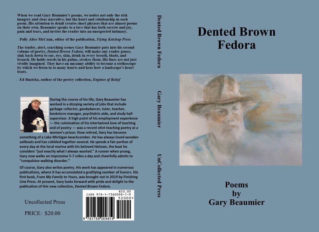 The poems in Gary Beaumier’s elegant book, Dented Brown Fedora, are enlivened by specters. But, Dented Brown Fedora is seldom a book of terror. It is a book of resonating and quietly ecstatic love. While there is haunting and loss, sometimes painful and powerful sorrow, the poems are fundamentally a celebration. The language and imagery are so refined and artful that even the most difficult memories and retrospections sing out with the kind of optimism that only Fine Art can manage to deliver. The poems in Dented Brown Fedora have achieved a kind of superb, elevated alchemy. They convert everything – all of the poet’s experience, whether joyful or melancholy – into beauty. As readers, as seekers, we will be led deep into each thing by these poems. In there, within this book, within each poem, at the poetic heart of an experience or a place or a person, somehow we find what we have been longing for.