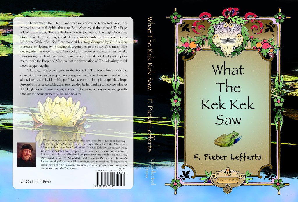 ” Pieter Lefferts’ “What The Kek Kek Saw” is a fascinating and moving fable from the complex imagined culture and society of the animals populating the Eastern Woodland ecosystems of The Adirondack Mountain Region of New York. This is UnCollected Press’s 2nd foray into fables from the animal kingdom, and we are very excited to be publishing this intricate and intensely relevant tale of a universal quest and journey to discovery. At its core, Pieter’s book is a call to all of us human animals to find a way to better listen to and understand our relationships with the other sentient beings on this planet – and to learn from our often wiser brethren. Pieter’s book is insightful, eloquent and important . We loved this expansive read and are sure you will also.